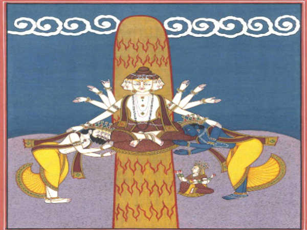 விஷ்ணுவும் பிரம்மனும் ஒருவரை ஒருவர் கோபமுடன் பார்த்துக் கொண்டிருந்ததால், அவர்களுக்கு இடையே ஒரு பெரிய தூண் ஒன்று உருவானது. இந்த தூண் மிகப்பெரியதாக இருந்ததால் அது எங்கே தொடங்குகிறது, எங்கே முடிவடைகிறது என்பதை விஷ்ணுவாலும் பிரம்மனாலும் கண்டுபிடிக்க முடியவில்லை.