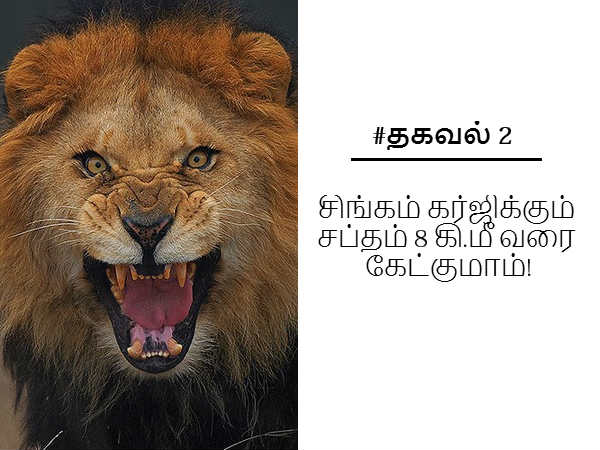 சிங்கம் கர்ஜிக்கும் சப்தம், 8 கிலோமீட்டர் வரை எதிரொலிக்கும் திறன் கொண்டது ஆகும்.