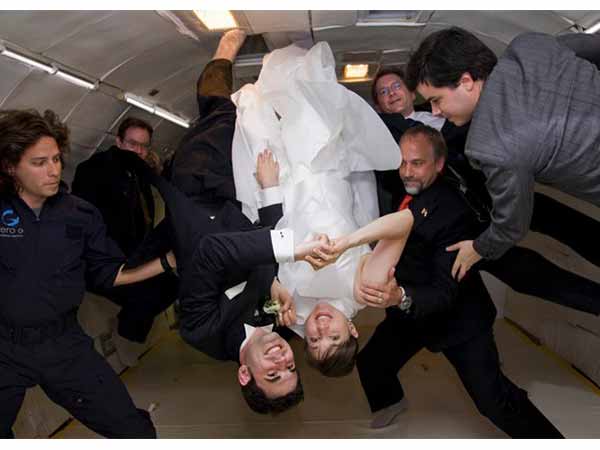 நியூயார்க்கைச் சேர்ந்த எரின் மற்றும் நோவா, புவி ஈர்ப்பு விசை இல்லாத போயிங் 727-200 விமானத்தில் தங்களது சபதத்தைப் பரிமாறிக் கொண்டனர். உண்மையிலேயே இது ஓர் வித்தியாசமான திருமணம் என்று சொல்லலாம்.