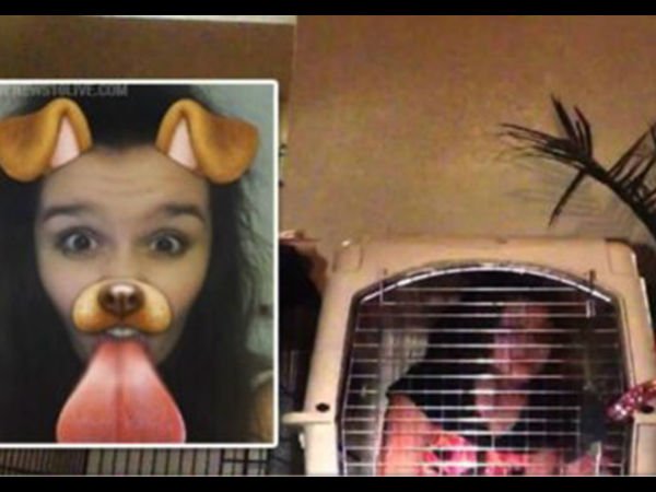 வாஷிங்க்டனை சேர்ந்த மோனிகா க்ரூஸ் என்ற 17 வயது பெண் அதிகமாக ஸ்னேப்சாட்ட்டில் நாய் ஃபில்டர் பயன்படுத்தி படங்களை பதிவு செய்துக் கொண்டிருந்த காரணத்தால் அவரது தந்தை ஆத்ரியாமடைந்து, அவரை நாய் கூண்டில் அடைத்தாக செய்திகள் பரவின.