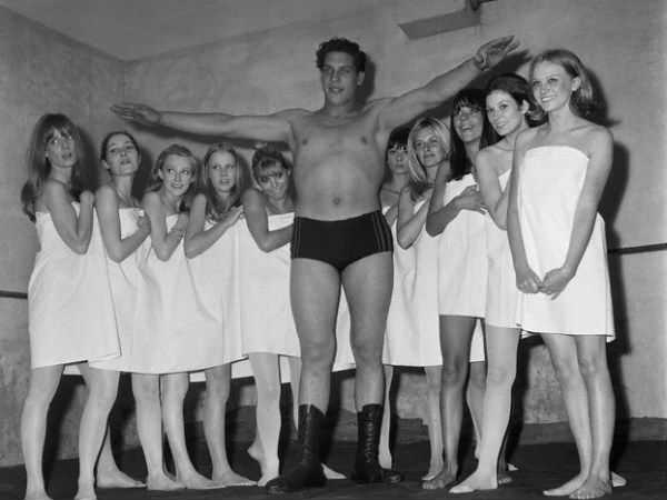 1985ல் நடந்த ரெஸில்மேனியாவின் போட்டியில், மெடிசன் சதுர பூங்காவில் ஆண்ட்ரூ நடுவில் நின்று அனைவரையும் பறக்கவிட்ட போது எடுத்த படம் இது.