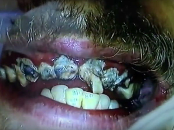 ஓரிரு நாட்கள் பல் துலக்காமல் இருந்தால், கைப்பிடி சோறு வாயில் இறங்காது. ஆனால், இங்கே ஒரு நபர் அவரது குழந்தை பருவம் முதல் ஏறத்தாழ 20 ஆண்டுகள் பல் துலக்காமல் இருந்திருக்கிறார். இதனால் அவரது வாய் ட்ரைனேஜ்விட மோசமான நிலைக்கு ஆளாகியுள்ளது.