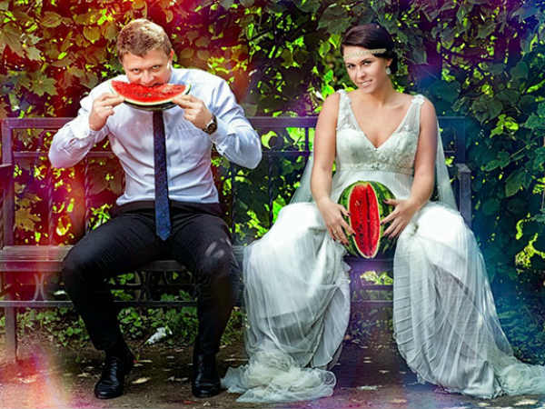 தர்பூசணி ஒரு ஆரோக்கியமான உணவு. பல காலமாக இயற்கையான முறையில் வயகாரா அளிக்கும் பலன்களை அளிக்கும் பழங்களில் தர்பூசணியும் ஒன்றென கூறப்பட்டு வருகிறது. எனவே, புதுமண தம்பதிகள் இந்த பழத்தை விரும்பி உண்பதில் எந்தவிதமான தவறும் இல்லை. ஆனால், இப்படி ஒரு போஸில் அமர்ந்து உண்பது தான் ஏடாகூடமாக இருக்கிறது.