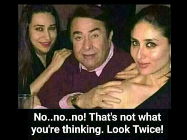 இந்தி சினிமா நடிகைகள் கரீனா கபூர் மற்றும் கரிஷ்மா கபூர் இருவரும் தனது தந்தை கபூருடன் எடுத்துக் கொண்ட புகைப்படம். நிச்சயம் முதல் தடவை பார்க்கும் போது சிலருக்கு இந்த புகைப்படம் ஏடாகூடமாக தெரிந்திருக்கலாம்.