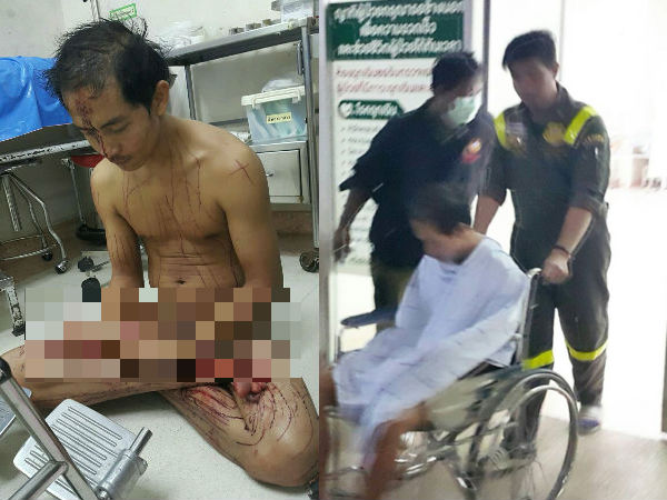 ஏறத்தாழ உடல் முழுவதும் இரத்தம், கீறல்கள் என பார்ப்பதற்கு அசௌகரியத்தை ஏற்படுத்தும் வகையில் இருக்கிறார் அந்த நபர். இந்த சம்பவம் தாய்லாந்தில் நடந்துள்ளதாக கூறப்படுகிறது.