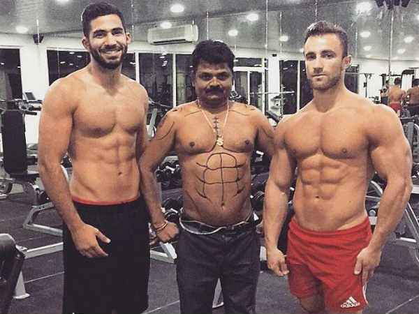 லேசர் ஆங்கிலாவ். ஃபிட்னஸ் ட்ரைனர்,பாடி பில்டர். பிரபலங்கள் பலருக்கும் ஃபிட்னஸ் ட்ரைனராக இருந்து பார்ப்பவர்கள் எல்லாம் அசரும் வகையில் உடலை கட்டுக்கோப்பாக மாற்ற டயட் மற்றும் உடற்பயிற்சியை கற்றுத் தருகிறார். அவரிடம் 6 பேக் ஆசான் கொடுக்கும் போஸ் இது! பயப்பட வேண்டாம் எடிட்டிங் உதவியுடன் அருகருகில் நிற்கவைக்கப்பட்ட படம் தான் இது.