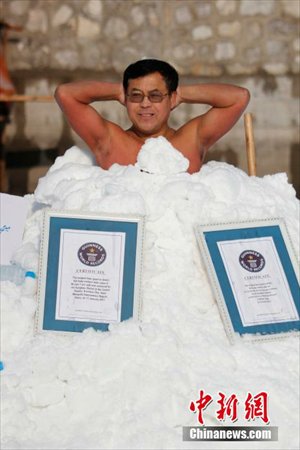 ஆனால் இங்கே பாருங்கள் ஐஸ் பாத் டப்பில் முழுவதும் ஐஸ் கட்டியால் நிரப்பி அதில் 118 நிமிடங்கள் வரை இருந்திருக்கிறார்.