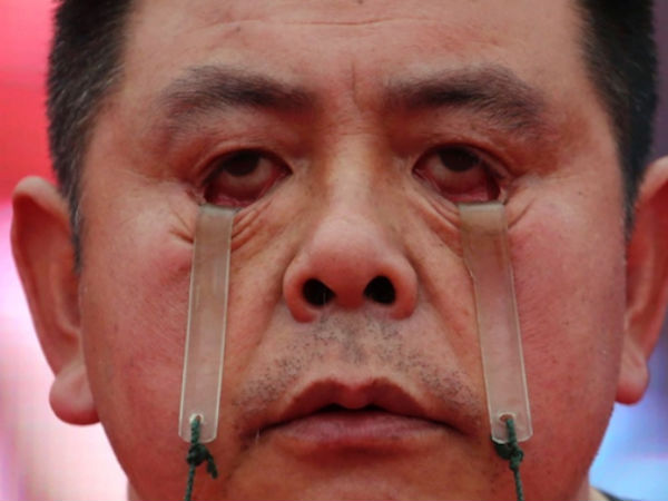 Wang Xianxiang கூறுகையில் ஒவ்வொரு கண் இமை மூலமாகவும் தனித்தனியாக 1.8 கிலோ எடையை தூக்குவேன் என்று அதிர்ச்சியூட்டுகிறார்.