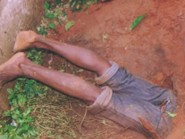அங்கே ஒரு ஆள் மண்ணில் பாதி புதைந்த நிலையில் மயங்கி கிடக்கிறார் என்று புகார் வந்தது. போலீசார் சென்று பார்த்த போது, இடுப்புக்கு மேல் பகுதி முழுவதும் மண்ணில் புதைந்து கிடந்தது. மக்கள் உதவியுடன் மண்ணைத் தோண்டு அவரை மீட்ட போது அவர் உயிரிழந்துவிட்டார்.
