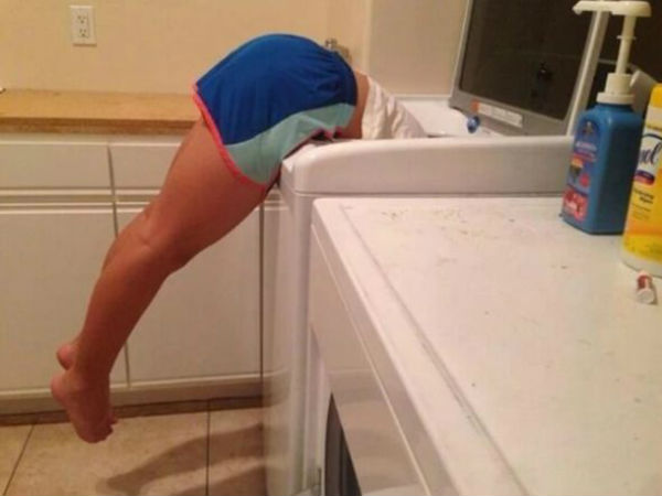 வாசிங் மெஷின் சற்று உயரம், அதில் கடைசியில் அடியில் கிடக்கும் துணியை எடுக்க கொஞ்சம் கஷ்டமாக இருக்கும். சிலர் வாசிங் மெஷின் அதிக தண்ணீர் புழங்குகிற இடம் என்று சொல்லி, சற்று உயரமான கல்லைப் போட்டு நம்மை டார்ச்சர் செய்வார்கள். ஒவ்வொரு துணியை எடுக்கும் போது குப்பறப்படுத்து பல்டியடித்து என எக்கச்சக்க சாகசங்களை செய்ய வேண்டும்.