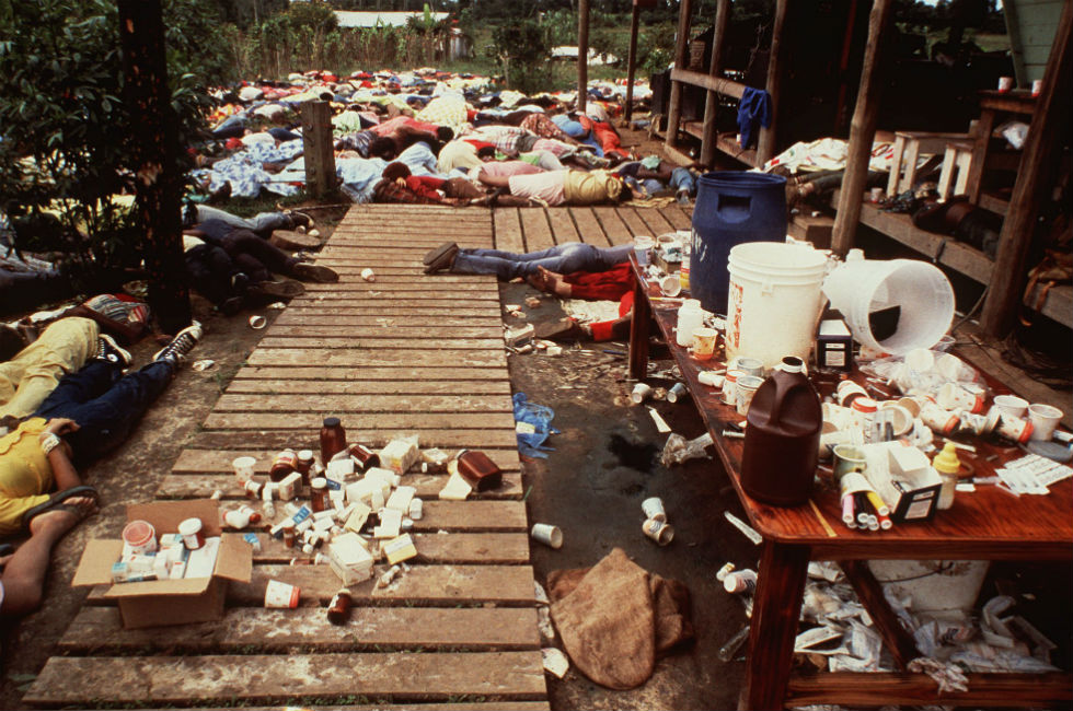 கோவிலில் ஏரளமானோர் குலுமியிருந்தார்கள், பெண்கள் குழந்தைகளும் அதில் அடக்கம். எல்லாரையும் வரிசையாக நிற்க வைத்து சிறிய கிளாசில் சிகப்பு நிற திரவத்தை கொடுத்தார்கள். எந்த யோசனையுமின்றி அந்த மக்கள் வாங்கிக் குடித்தார்கள். சிலர் உடனேயும், சிலர் துடித்தும் , உயிருக்கு போராடியும் என 45 நிமிடங்களில் அந்த கோவிலில் இருந்தவர்கள் அத்தனை பேரும் செத்து வீழ்ந்தார்கள்.