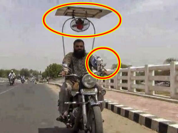 நம்ம ஆளுங்க அறிவு இருக்கே அத அடிச்சுக்கவே முடியாது. காருக்குள்ள, பஸ்குள்ள, ஏன் லாரிக்குள்ள கூட ஃபேன் வெச்சு பார்த்திருப்பீங்க. பைக்குல பார்த்திருக்கீங்களா? இதோ பாருங்க. அண்ணன் ஒரு அறிவு பெட்டகம். இன்னொன்னு கவனிச்சீங்களா? அண்ணன் தலைக்கு மேல மட்டும் இல்ல, தன்னோட ஹேண்டில் பார் மேலையும் இன்னொரு ஃபேன் வெச்சிருக்காரு.