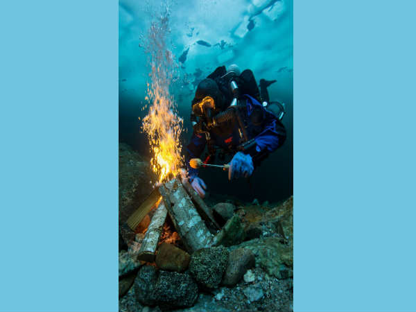 ஃபின்லாந்தைச் சேர்ந்த பெக்கா டுர்ரி என்பவர் தான் இந்த படத்தின் சொந்தக்காரார். படத்தை பார்த்ததும் கடலுக்கு அடியில் எப்படி நெருப்பு? அதுவும் சமைத்து சாப்பிட முடியுமா என்று நம்மையெல்லாம் புருவம் உயர்த்த செய்திருக்கிறார் பெக்கா.
