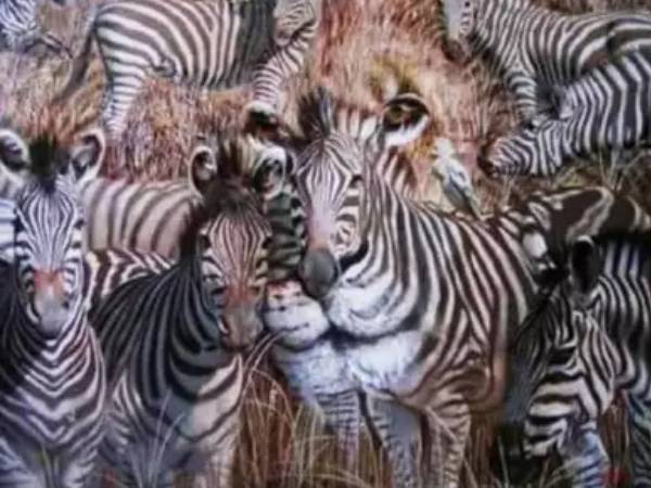பலருக்கும் சிங்கம் தான் முதலில் தெரிந்திருக்கும். சிங்கத்தைப் பார்க்க முடியாதவர்கள், இந்த படத்தின் மையப்பகுதியைப் பாருங்கள் தெரியும். இந்த படத்தில் சிங்கம் பின்னணியில் மறைந்துள்ளது. மையத்தில் நிற்கும் வரிக்குதிரையின் காதுகள் அதன் கண்கள், அதேசமயம் இரண்டு வரிக்குதிரைகளின் கழுத்து அதன் மூக்கின் தோற்றத்தை அளிக்கிறது. முதலில் சிங்கத்தைப் பார்ப்பவர்கள் அதிக விருப்பத்தையும், மன உறுதியைக் கொண்டிருப்பார்கள் என்று உளவியல் நிபுணர்கள் கூறுகின்றனர். இந்த வகையான மக்கள் இயற்கையாகவே தலைவருக்கான குணங்களைக் கொண்டிருப்பார்கள் மற்றும் அதிக ஆதிக்கம் செலுத்துவார்கள்.