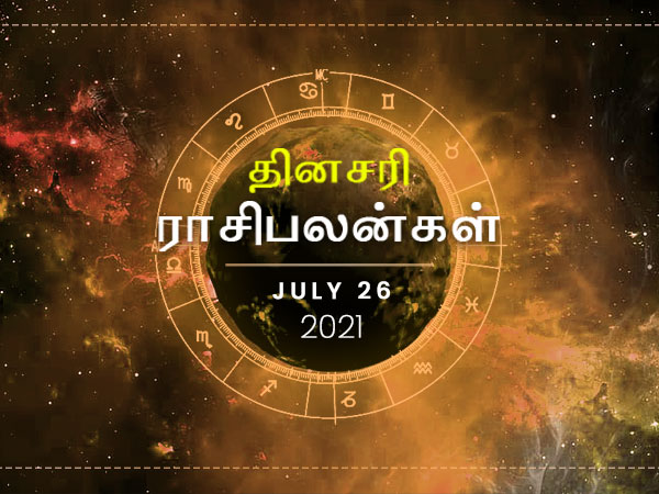 இன்று மேஷம் முதல் மீனம் வரையிலான 12 ராசிக்காரர்களுக்குமான பலன்களை பற்றி பார்க்கலாம். மேலும், நட்சத்திரங்களின் சஞ்சாரம் கிரகங்களின் நகர்வு ஆகியவற்றை வைத்து 12 ராசிக்காரர்களுக்கான, ராசியான நிறம், ராசியான எண் மற்றும் ராசியான நேரங்களை பற்றியும் தெரிந்து கொள்ளலாம். வேலை, தொழில், சந்தோஷம், கஷ்டம் என அனைத்தை பற்றியும் இதன் மூலம் அறியலாம். இன்று கடக ராசிக்காரர்களுக்கு சந்திராஷ்டமம். ஜூலை 26 ஆம் தேதி திங்கட்கிழமையான இன்று, உங்களது ராசிக்கான பலனை இப்போது பார்க்கலாம்...