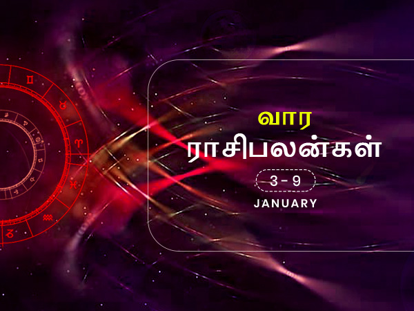 நம் வாழ்வில் ஏற்படக்கூடிய அனைத்து இன்ப துன்பங்களுமே நமது ஜாதக கிரக நிலைகளை பொறுத்தது. அந்த வகையில், அடுத்து வரும் 7 நாட்களும் உங்கள் கிரக நிலைகளின் படி எப்படி இருக்க போகிறது என்பதை அறிந்து கொள்ள வேண்டுமா? அப்படியெனில், இந்த கட்டுரையை தொடர்ந்து படியுங்கள். தனிப்பட்ட வாழ்க்கை, தொழில், வேலை வாய்ப்பு, திருமணம் என அனைத்தை பற்றியும் இங்கே தெரிந்து கொள்ளலாம். சரி, இந்த வாரம், அதாவது ஜனவரி 03, 2021 முதல் ஜனவரி 09, 2021 வரையிலான காலக்கட்டத்திற்கு உங்களது ராசிக்கான பலன் என்ன என்பதை பற்றி இப்போது பார்க்கலாம்...