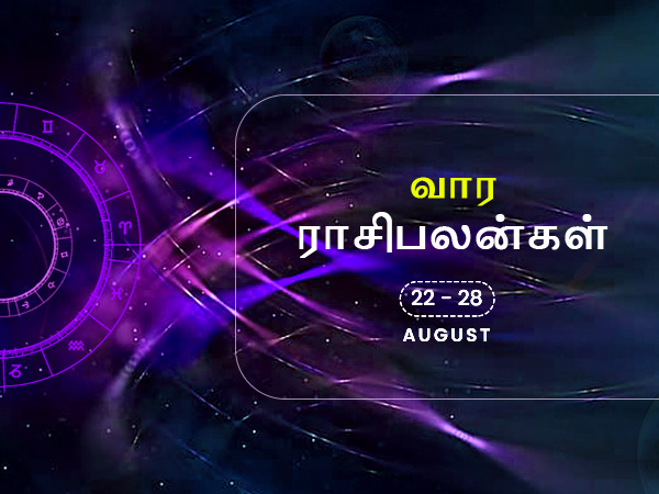 நம் வாழ்வில் ஏற்படக்கூடிய அனைத்து இன்ப துன்பங்களுமே நமது ஜாதக கிரக நிலைகளை பொறுத்தது. அந்த வகையில், அடுத்து வரும் 7 நாட்களும் உங்கள் கிரக நிலைகளின் படி எப்படி இருக்க போகிறது என்பதை அறிந்து கொள்ள வேண்டுமா? அப்படியெனில், இந்த கட்டுரையை தொடர்ந்து படியுங்கள். தனிப்பட்ட வாழ்க்கை, தொழில், வேலை வாய்ப்பு, திருமணம் என அனைத்தை பற்றியும் இங்கே தெரிந்து கொள்ளலாம். சரி, இந்த வாரம், அதாவது ஆகஸ்ட் 22, 2021 முதல் ஆக்ஸ்ட் 28, 2021 வரையிலான காலக்கட்டத்திற்கு உங்களது ராசிக்கான பலன் என்ன என்பதை பற்றி இப்போது பார்க்கலாம்...