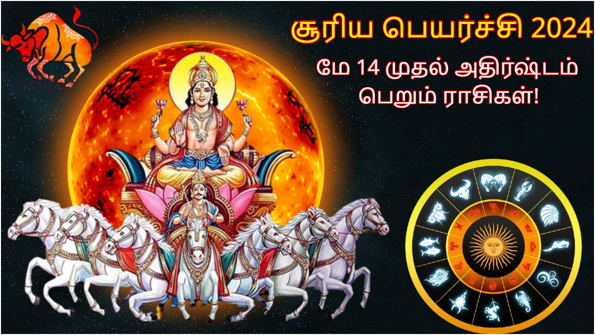 Sun Transit in Taurus On 14 May 2024: வேத ஜோதிடத்தில் நவகிரகங்களின் தலைவனாக கருதப்படுபவர் சூரியன். இந்த சூரியன் பதவி, மரியாதை, கௌரவம், வெற்றி, முன்னேற்றம் ஆகியவற்றின் காரணியாவார். இந்த சூரியன் 30 நாட்களுக்கு ஒருமுறை ராசியை மாற்றுவார். இப்படி மாற்றும் போது தான் தமிழ் மாதங்கள் பிறக்கின்றன. மேலும் மேஷம் முதல் மீனம் வரையிலான அனைத்து ராசிக்காரர்களின் வாழ்க்கையிலும் அதன் தாக்கம் தெரியும்.