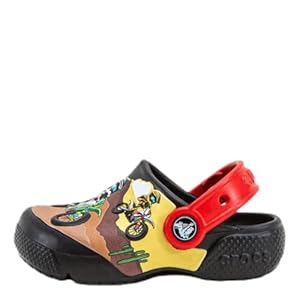 இந்த Unisex-Child Motorsport Clog குழந்தைகளை புதிய மற்றும் சுவாரஸ்யமான கிராபிக்ஸ் மூலம் தொடர்பு கொள்கிறது. தற்போதுள்ள குழந்தைகளுக்கு கிராபிக்ஸ் மீது மோகம் அதிகம் உள்ளது. அதன் பிவோட்டிங் ஹீல் ஸ்ட்ராப்கள், க்ளாக் மற்றும் ஸ்லைடு ஸ்டைல்களுக்கு இடையே குழந்தைகள் இந்த காலணியை அணிந்துகொள்ள விரும்புவார்கள். இது ஜிபிட்ஸ் வசீகரத்துடன் தனிப்பயனாக்கப்பட்டுள்ளது மற்றும் மேம்பட்ட பிடிப்பு, ஆதரவு மற்றும் நாள் முழுவதும் வசதிக்காக க்ரோஸ்லைட் ஃபோம் அவுட்சோல்களைக் கொண்டுள்ளது. இது உங்கள் குழந்தைக்கு மிகவும் வசதியாக இருக்கும்.