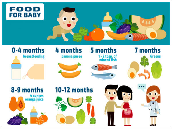 இங்கு குழந்தை பிறந்த முதல் நாளில் இருந்து, 12 மாத காலம் வரை எந்த உணவை எப்போது கொடுக்க வேண்டும் என்பது குறித்து கொடுக்கப்பட்டுள்ளது.
