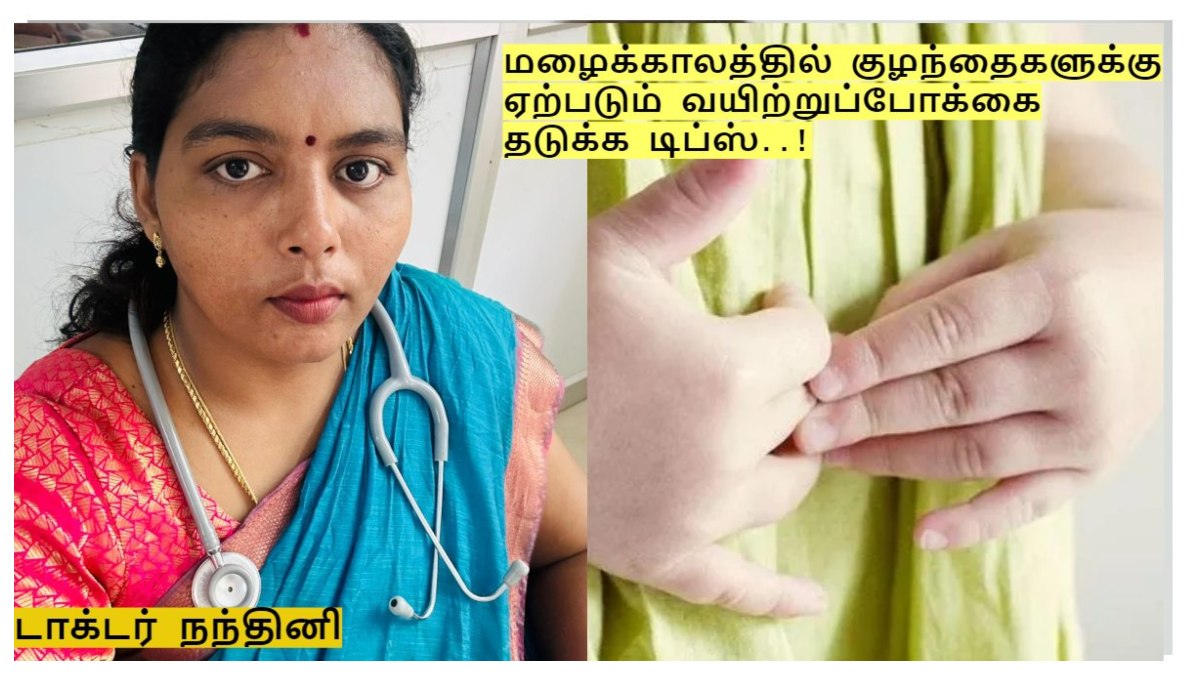 மழைக்காலத்தில் குழந்தைகளுக்கு ஏற்படும் வயிற்றுப்போக்கு எப்படி வருகிறது என்ற கேள்விக்கு பதிலளித்த மருத்துவர் நந்தினி, மழைக்காலம் கோடை வெப்பத்திலிருந்து ஒரு புத்துணர்ச்சியூட்டும் இடைவெளியைக் கொண்டு வருகிறது, ஆனால் அது பல உடல்நலக் கவலைகளை, குறிப்பாக குழந்தைகளுக்குத் தருகிறது. இந்த பருவத்தில் மிகவும் பொதுவான உடல்நலப் பிரச்சினைகளில் ஒன்று வயிற்றுப்போக்கு ஆகும், இது அசுத்தமான நீர், மோசமான சுகாதாரம் மற்றும் உணவு மூலம் பரவும் நோய்த்தொற்றுகள் உள்ளிட்ட பல்வேறு காரணிகளால் ஏற்படலாம்” என்றார்.