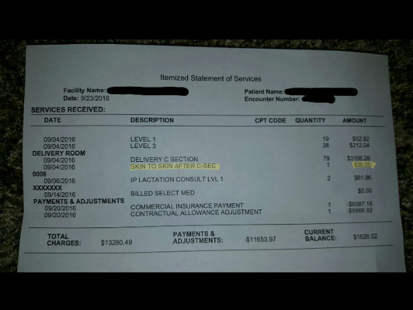 அதில், சிசேரியன் முடிந்த பிறகு, தான் பெற்ற குழந்தையை தொட்டு தூக்கியதற்கு மருத்துவமனையில் $39.35 டாலர்கள் பில் போடப்பட்டிருந்தது பெரும் அதிர்ச்சியை ஏற்படுத்தியுள்ளது.