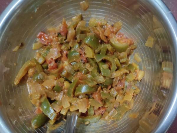 * முதலில் குடைமிளகாயை ஓரளவு நீளத் துண்டுகளாக வெட்டிக் கொள்ள வேண்டும்.