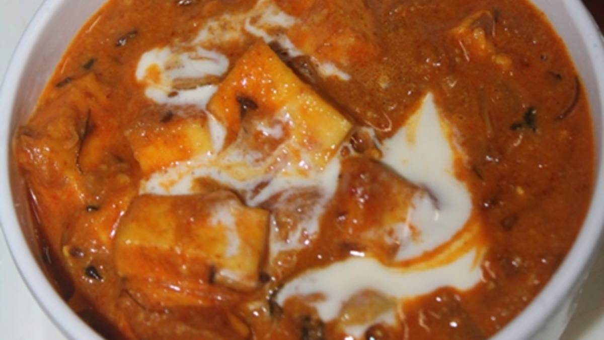 * பின் சிறிது நீரை ஊற்றி, பன்னீர் துண்டுகளை சேர்த்து, சுவைக்கேற்ப உப்பு மற்றும் சர்க்கரை சேர்த்து கிளறி 20 நிமிடம் குறைவான தீயில் வேக வைக்க வேண்டும்.