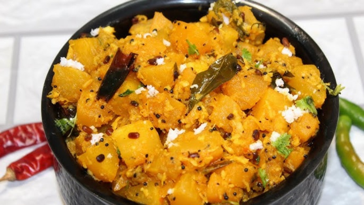 Manjal Poosanikai Poriyal Recipe In Tamil: தற்போது மஞ்சள் பூசணி சீசன் என்பதால் மார்கெட்டுகளில் இந்த காயை அதிகம் காணலாம். மஞ்சள் பூசணி ஏராளமான நுண்சத்துக்களைக் கொண்டது. இந்த சீசன் இருக்கும் போதே அடிக்கடி வாங்கி சமைத்து சாப்பிடுங்கள்.