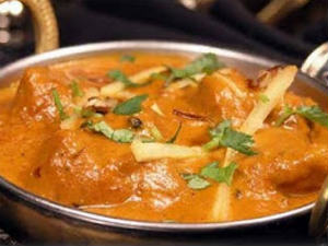 கடாயில் வெண்ணையை ஊற்றி காய்ந்ததும் பட்டை, லவங்கம், ஏலக்காய் சேர்த்து தாளிக்கவும். இப்போது நறுக்கிய வெங்காயம், இஞ்சி, பூண்டு விழுது, தக்காளி இவை சேர்த்து வதக்கவும். தொடர்ந்து தனியாத்தூள், மஞ்சள்தூள், சீரகத்தூள், மிளகாய்த் தூள், போதுமான அளவு உப்பு சேர்த்து வதக்கவும். சிக்கன் ஊற வைத்த மசாலா கலவை மீதமிருந்தால் அதையும் சேர்த்துக் கொள்ளவும். மசாலா கலவை வேக தேவையான நீர் விடவும்.