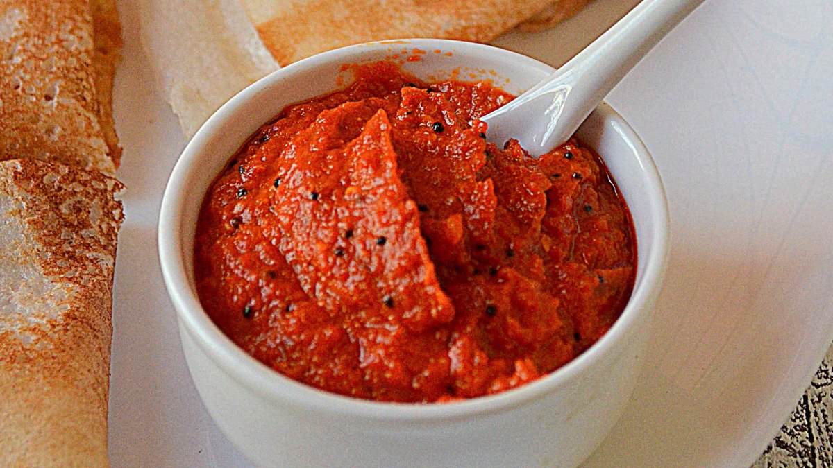 * முதலில் மிக்சர் ஜாரில் 5-6 காஷ்மீரி வரமிளகாய், 1 டீஸ்பூன்