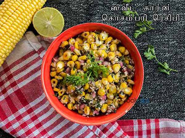 கொசம்பரி என்பது பழங்கள் மற்றும் காய்கறிகள் சேர்ந்த சுவை மிகுந்த சாலட் ஆகும். நிறைய கொசம்பரி வகைகள் இருந்தாலும் இந்த ஸ்வீட் கார்ன் கொசம்பரி அற்புதமான சுவையை தருவதோடு ஏராளமான ஊட்டச்சத்துக்களை நமக்கு தரக