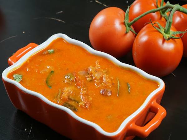 உங்களுக்கு தக்காளி குழம்பு எப்படி ஈஸியாக செய்வதென்று தெரியவில்லையா? கீழே தக்காளி குழம்பு ரெசிபியின் எளிய செய்முறை கொடுக்கப்பட்டுள்ளது. அதைப் படித்து செய்து சுவைத்து எப்படி இருந்தது என்று எங்களுடன் உங்கள் கருத்துக்களைப் பகிர்ந்து கொள்ளுங்கள்.