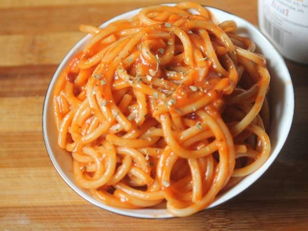 * பின்பு அதில் வேக வைத்த பாஸ்தாவை சேர்த்து நன்கு கிளறி, 3 நிமிடம் வேக வைத்து இறக்கினால், சுவையான தக்காளி கெட்சப் பாஸ்தா தயார்.