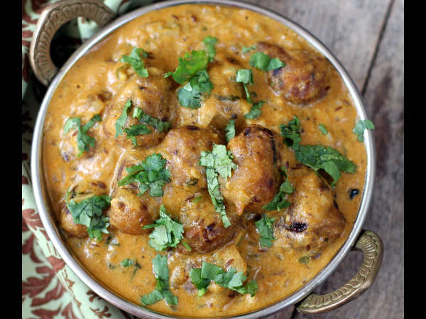 அடுத்து 1 1/2 கப் தண்ணீர் ஊற்றி கொதிக்க விட்டு, பின் தீயை குறைவில் வைத்து, 7-8 நிமிடம் கொதிக்க விட்டு, பின் பொரித்து வைத்துள்ள கோப்தாவைப் போட்டு, சிறிது நேரம் அடுப்பில் வைத்து இறக்கி, 7-10 நிமிடம் கழித்து, ப்ரஷ் க்ரீம் மற்றும் கொத்தமல்லியால் அலங்கரிக்க வேண்டும்.