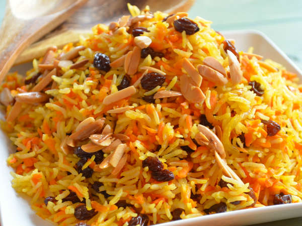 பின் தீயை குறைவில் வைத்து, 3-4 நிமிடம் வேக வைத்து இறக்கினால், சூப்பரான கேரட் சாதம் ரெடி!!! இதன் மேல் நட்ஸ்களை தூவி அலங்கரித்து பரிமாறலாம்.