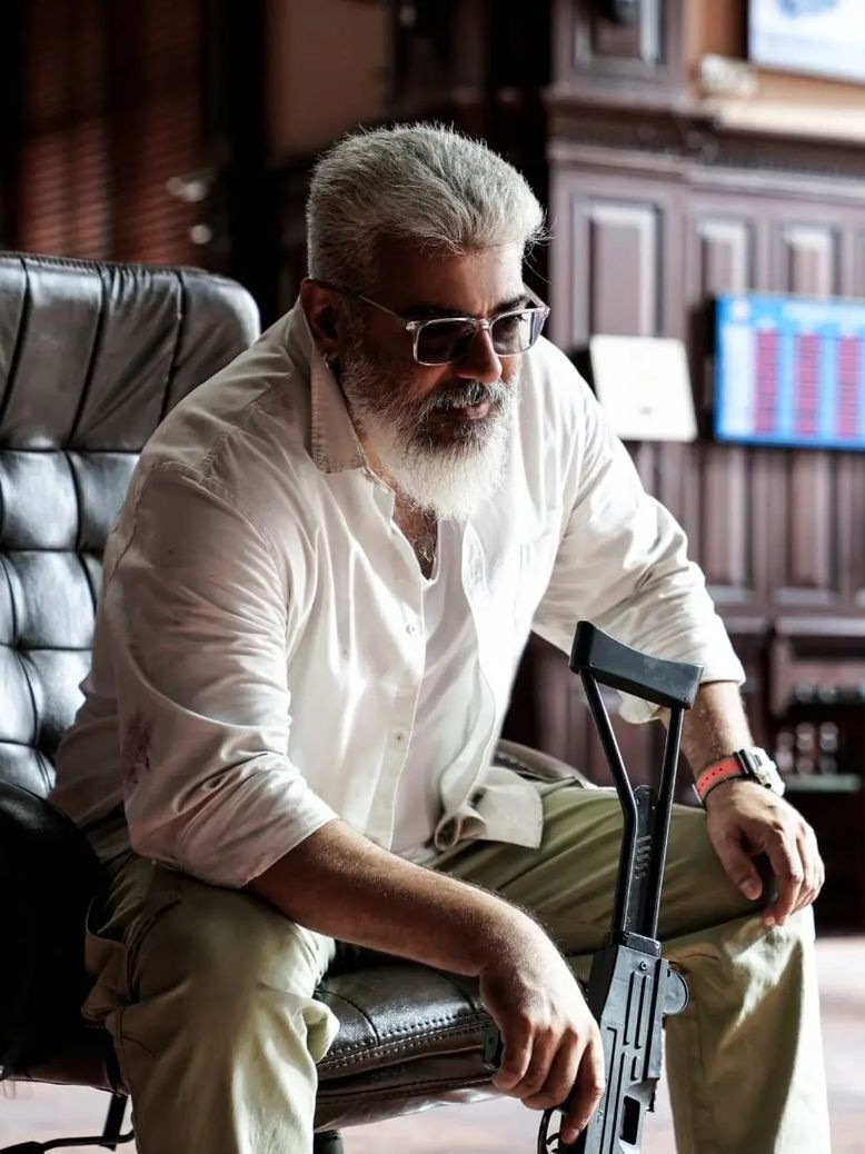 முற்றிலும் வெள்ளை முடி, தாடி என வைத்தும் கூட அஜித்தின் மாஸிற்கு குறைவில்லை